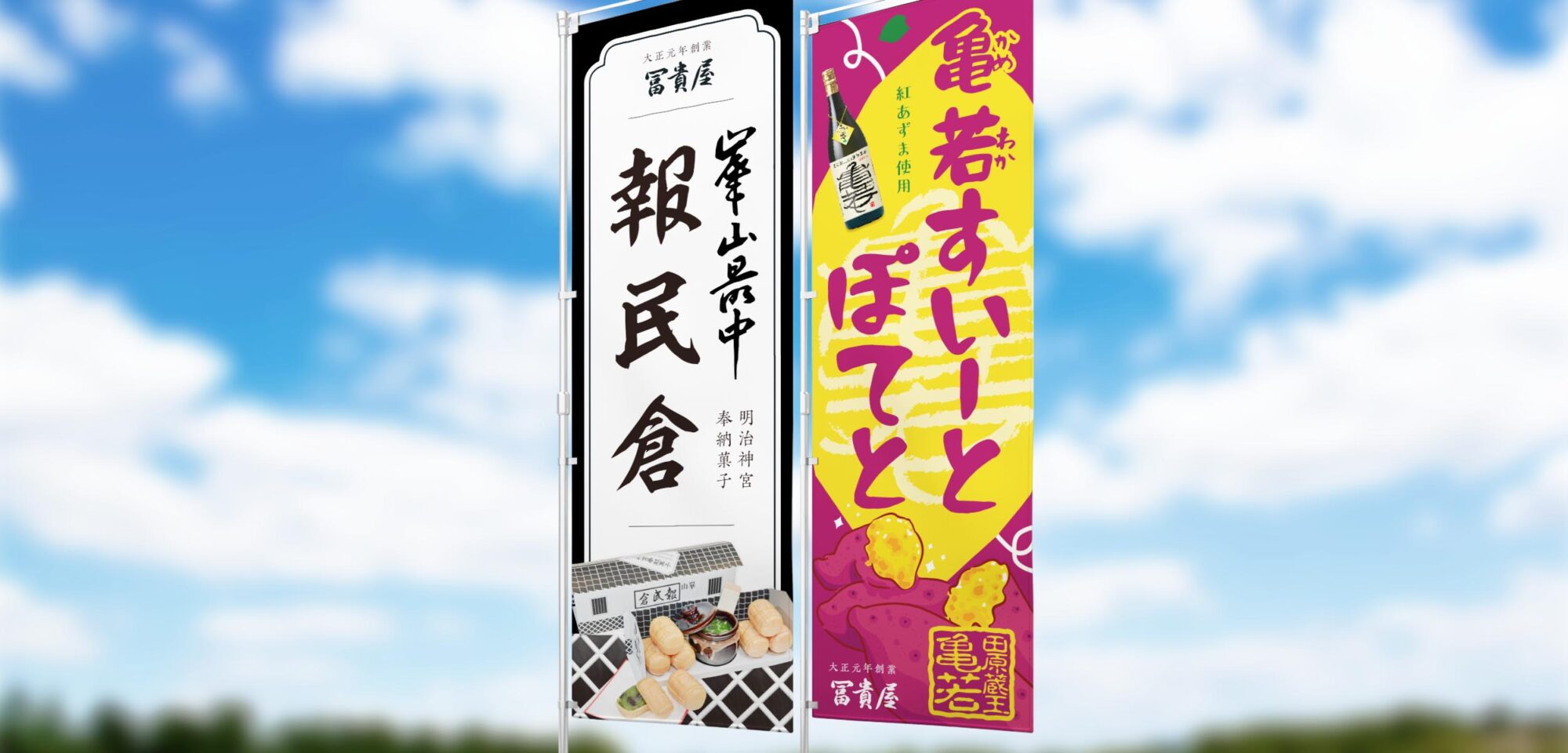 Graphic │ Flag / FUUKIYA 菜の花スイーツに引き続き、 愛知県田原市の洋和菓子店「冨貴屋」様ののぼりを制作をいたしました。 「亀若すいーとぽてと」「報民倉」の2種類です。 →Insta […]
