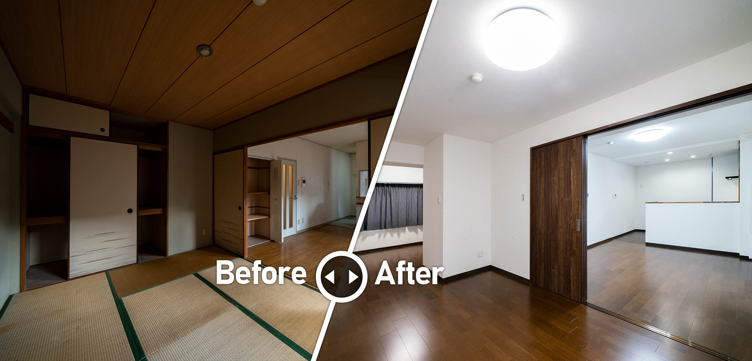 リノベーション前の写真から撮影編集させていただき、施工会社様が各ポータルサイトやHP、SNSでアピールする際にリノベーション前後がより分かりやすいようにしています。