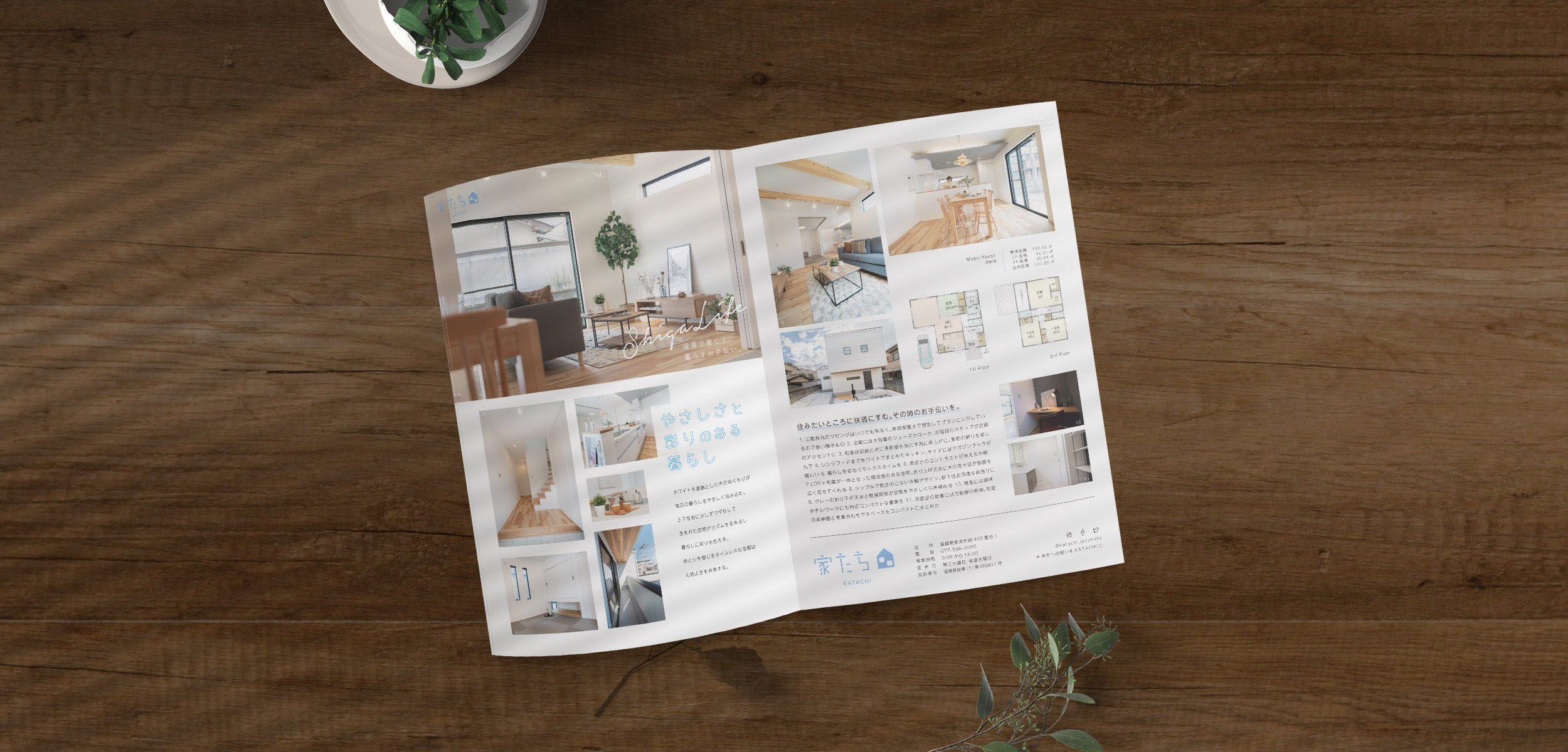 滋賀県栗東市の不動産会社・注文住宅を手掛ける「家たち-KATACHI-」様の二つ折りパンフレットを制作をいたしました。
